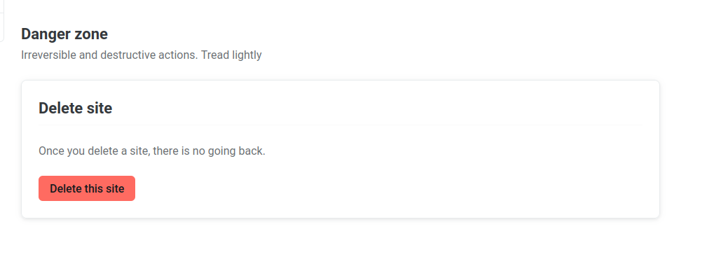 En primer lugar, vamos a eliminar el site que hemos desplegado antes en Netlify para evitarnos cualquier problema y/o conflicto: