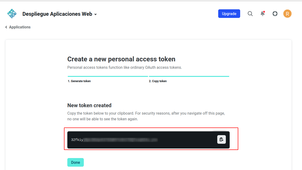- Copia el token generado y esa será la password que tendrás que poner.