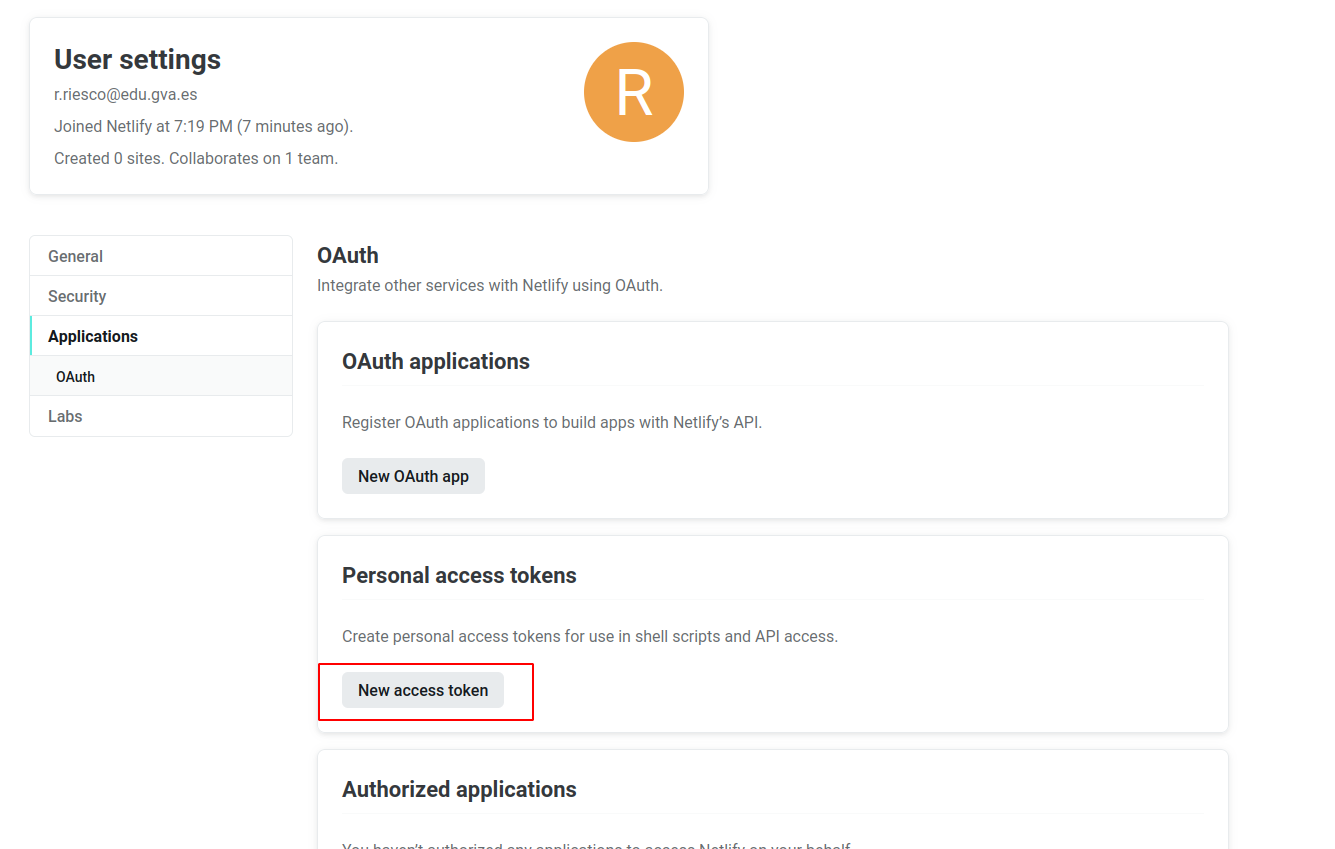 Nos logeamos en Netlify
